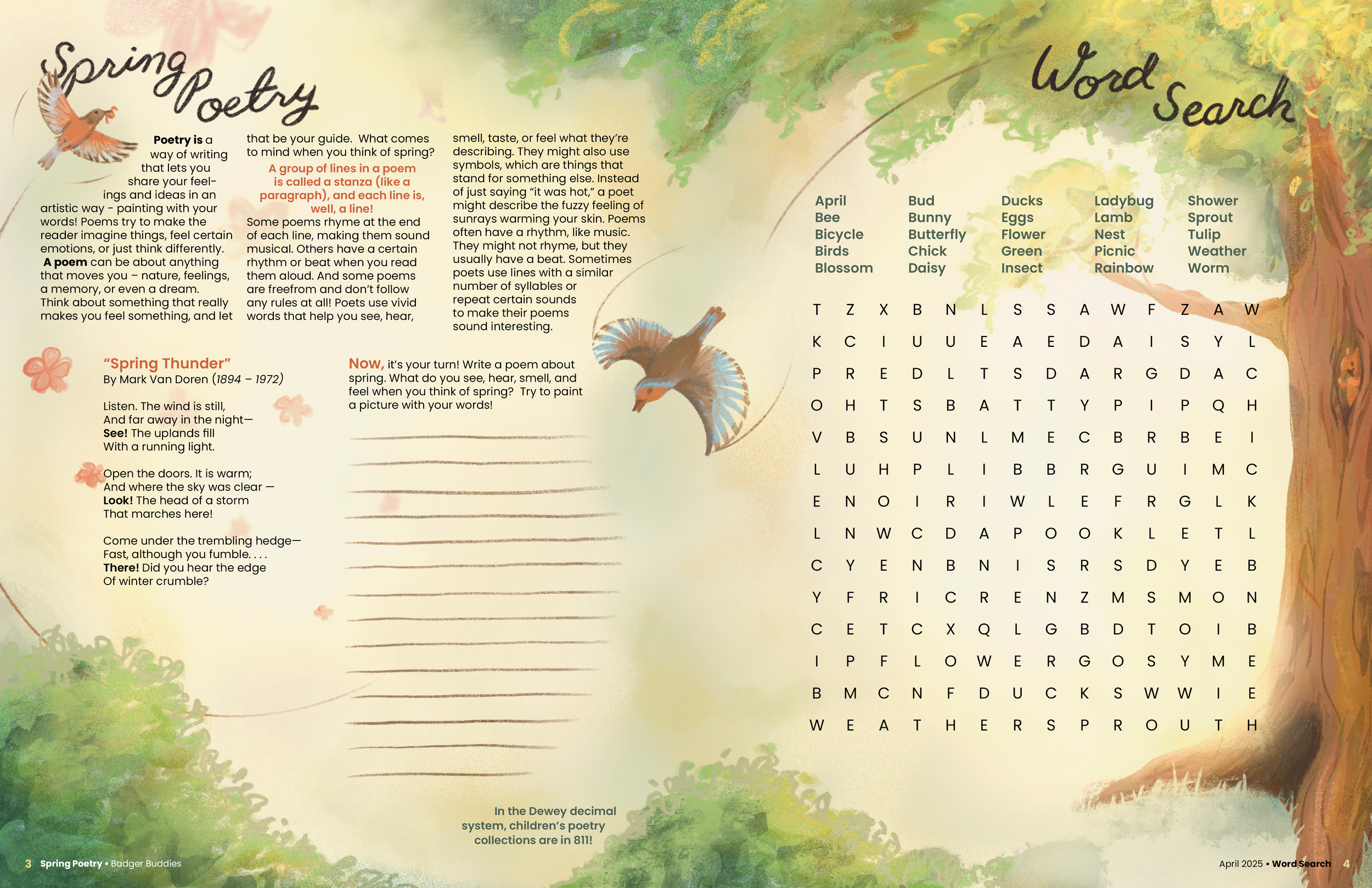My Senior thesis was the April edition of Badger Buddies, a Milwaukee-based nature magazine designed to encourage lifelong learning through educational and interactive content aimed at 3rd to 5th graders. Growing up reading nature magazines like Ranger Rick really inspired this project.
